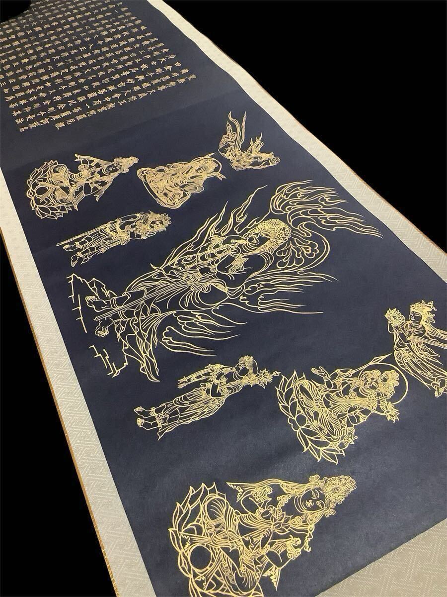 - 巻物Jun725[聖無動尊大威怒王秘密陀羅尼経]紙本 工芸/仏画 仏教美術 紺紙金泥 不動明王 壽道観心禅浄 懺悔文 三帰戒 開経偈