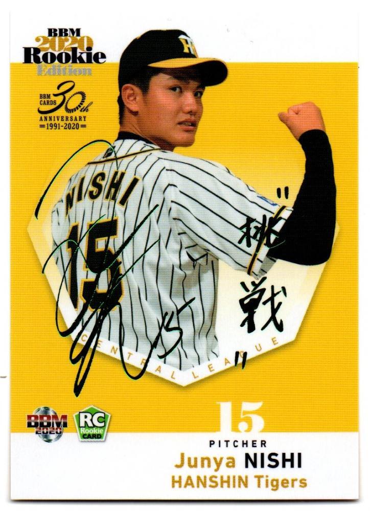 - 【西純矢(阪神タイガース)】2020 BBM ルーキーエディション 緑箔サイン版パラレルカード[21/50]