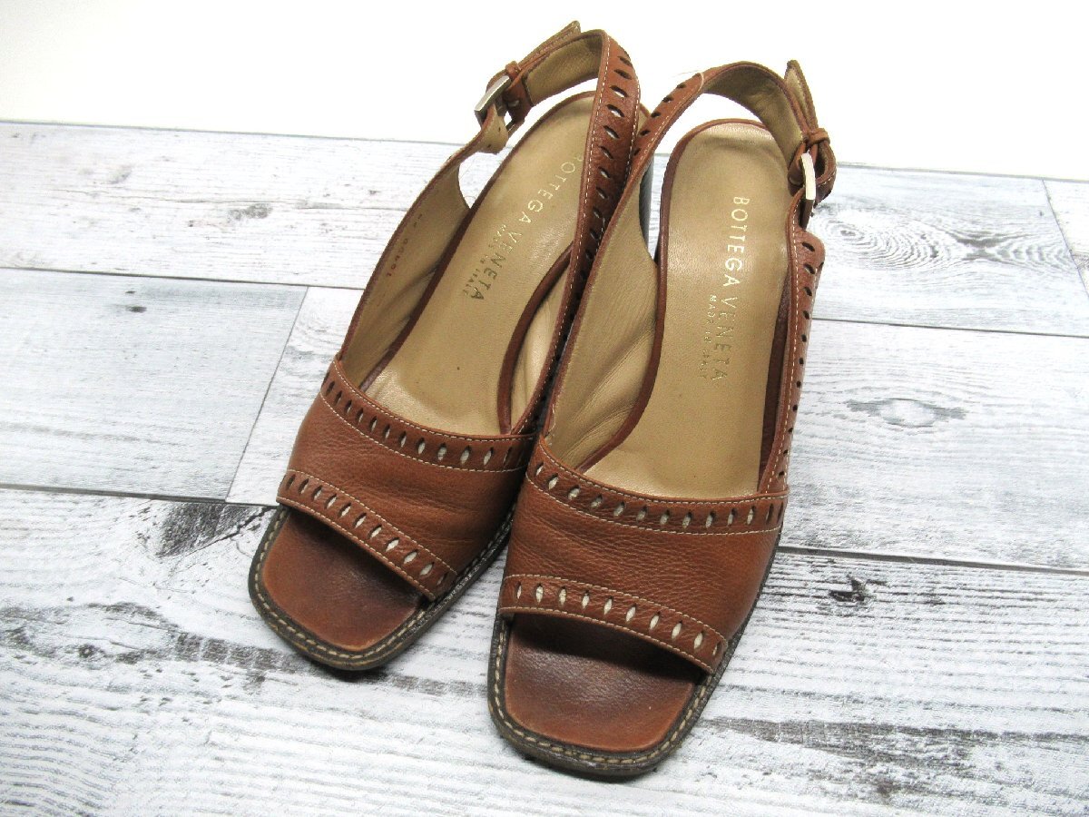 - ☆【B送900円】1836 Bottega Veneta ボッテガヴェネタ レザーサンダル ストラップ オープントゥ ブラウン スクエア イタリア製 36