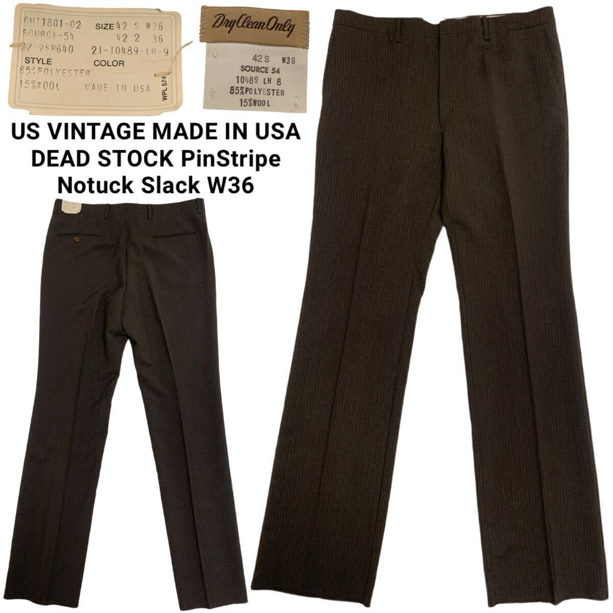 - US VINTAGE US ヴィンテージ MADE IN USA USA製 デッドストック ピンストライプ ノータック スラックス ブラウングレー系 W36 アーカイブ