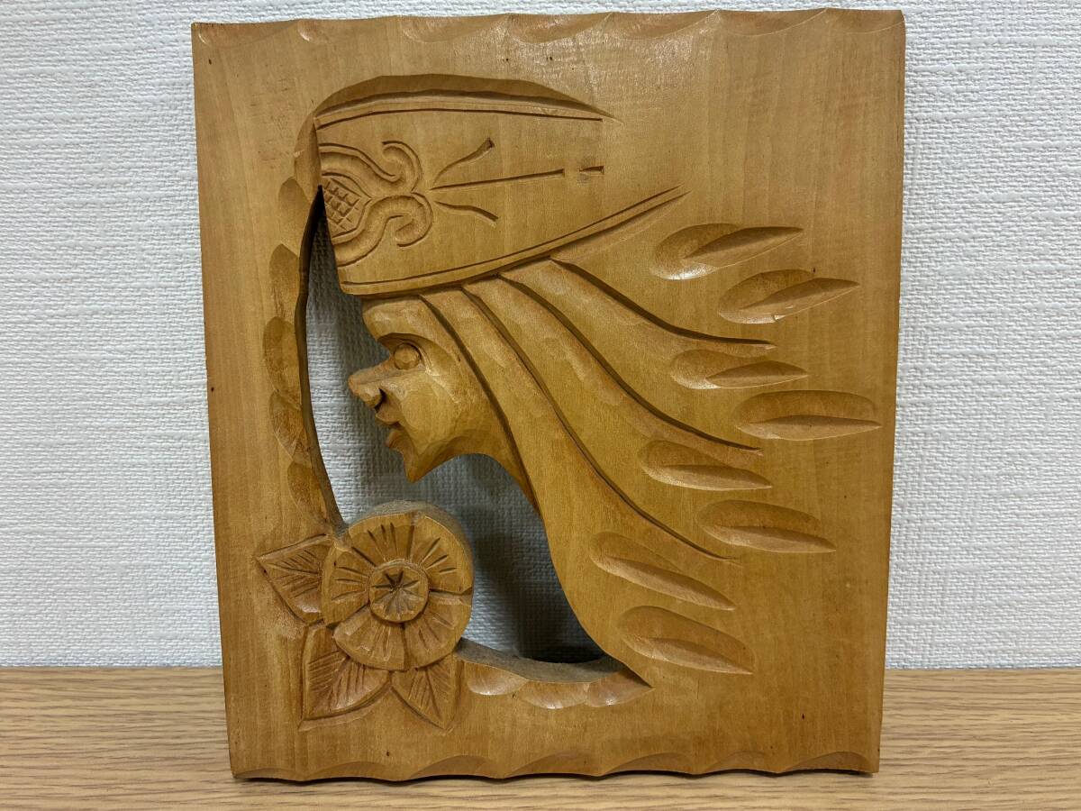 - 19194A アイヌ コタン 民族 木製 木彫り 彫刻 オブジェ 壁掛け 伝統工芸 女性の横顔 ※説明と画像をご確認下さいませ!