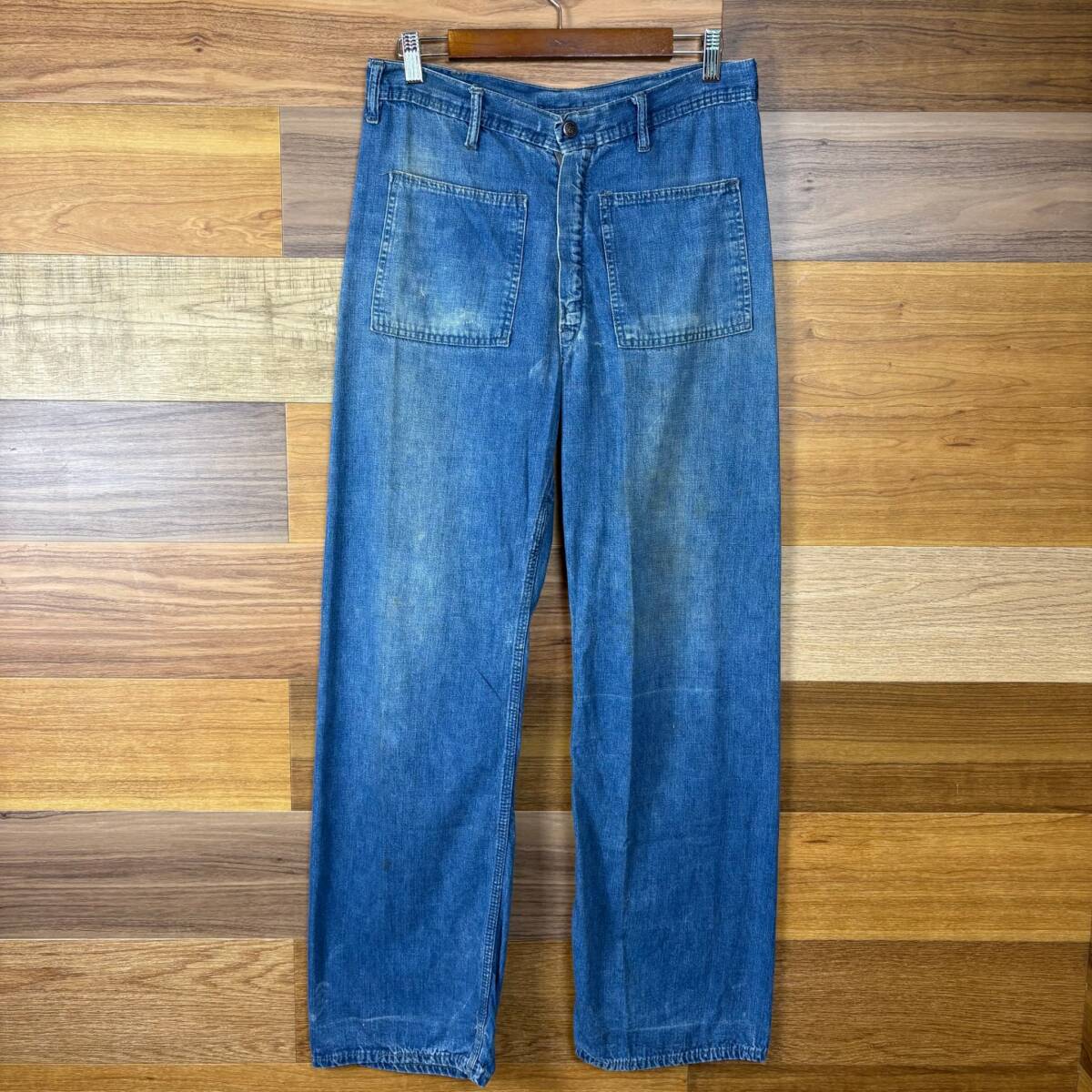 > 50s DUBBLE WARE ダブルウェア ノーシーム 巻き インディゴ デニム ワーク パンツ サイズ メンズ M位 50年代 ビンテージ 古着 r25050915