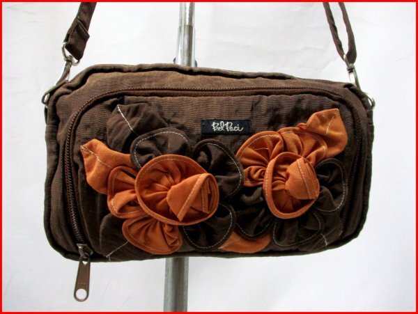 - BelPaci/ベルパーチ◇3wayバッグ クラッチ・ショルダー・ウエストバッグ チョコ 花飾り付 斜め掛け W25cm