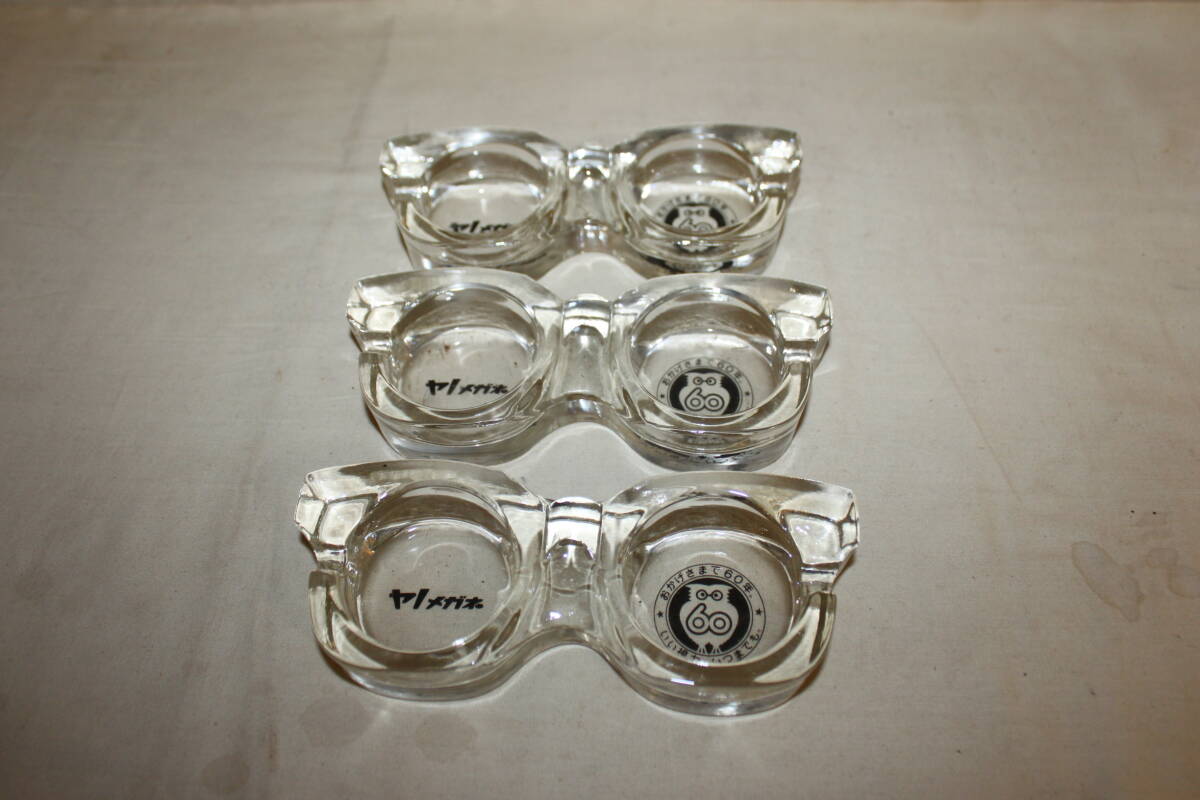 - ◆当時物 ヤノメガネ 60周年 ガラス 灰皿/昭和レトロ 企業物 グッズ 雑貨 グッズ インテリア 3セット①