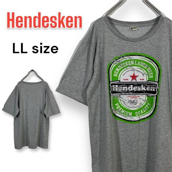 > 【レア】おもしろパロディ Tシャツ Hendesken LLサイズ グレー ハイネケンパロディ