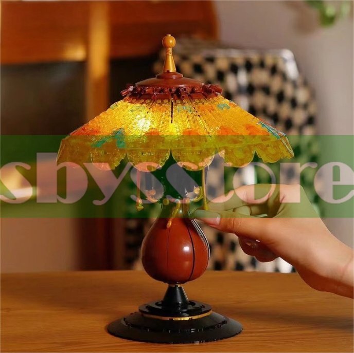 - ミニパーツシリーズ レトロテーブルランプ 模型 ブロック風 インテリア デスクトップ飾り 組み立て 知育玩具 ランプとバラの装飾を含み