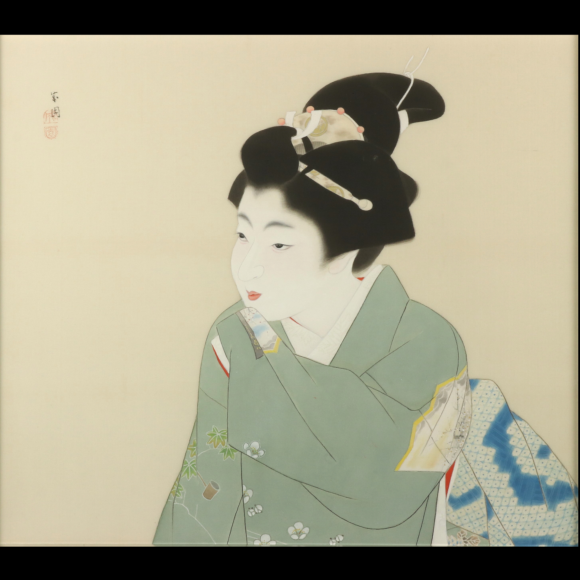 - 47■【真作】島成園 「美人画」 絹本 肉筆 大阪の人 額装