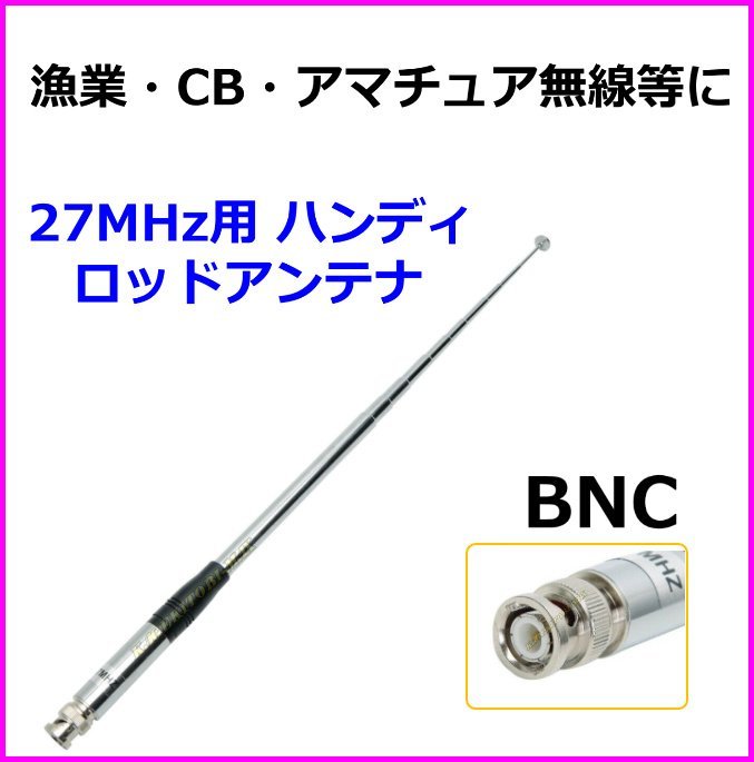 > 漁業無線・CB無線・アマチュア無線機 等に27MHz用 ハンディ BNC コネクター ロッドアンテナ -F 新品 / トランシーバー 基台 に 過激飛びMAX