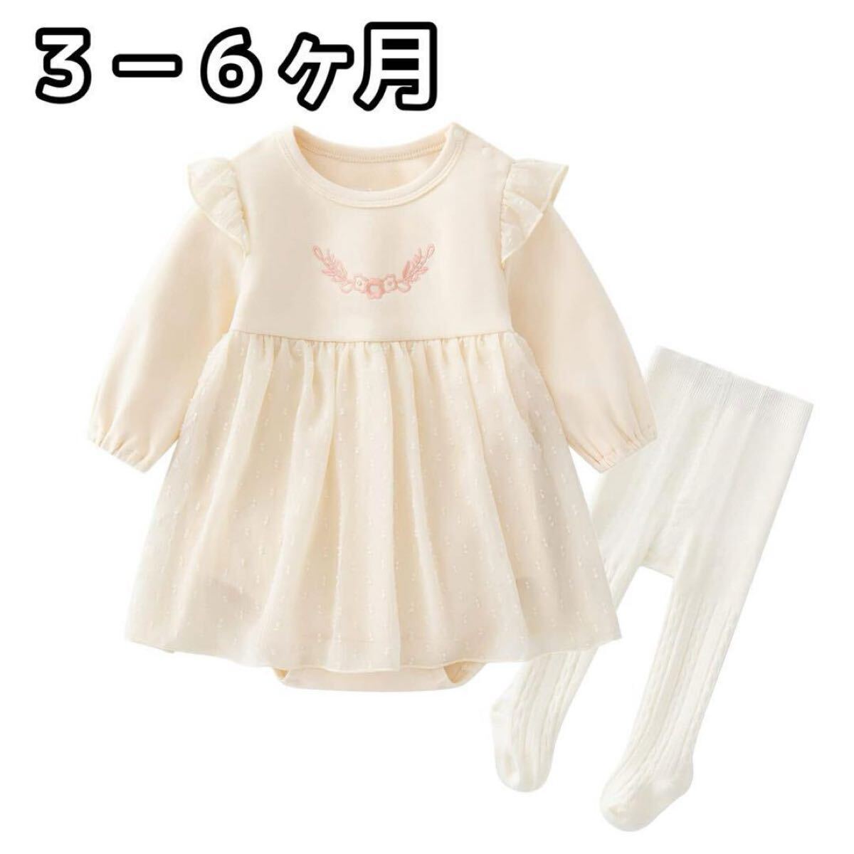 - ベビー服 長袖 ワンピース ドレス ロンパース アイボリー 3-6ヶ月
