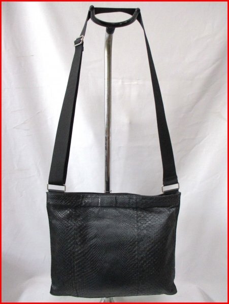 - Les sacs Adam/ルサックアダム◇ショルダーバッグ パイソン使い BK 斜め掛け W34cm
