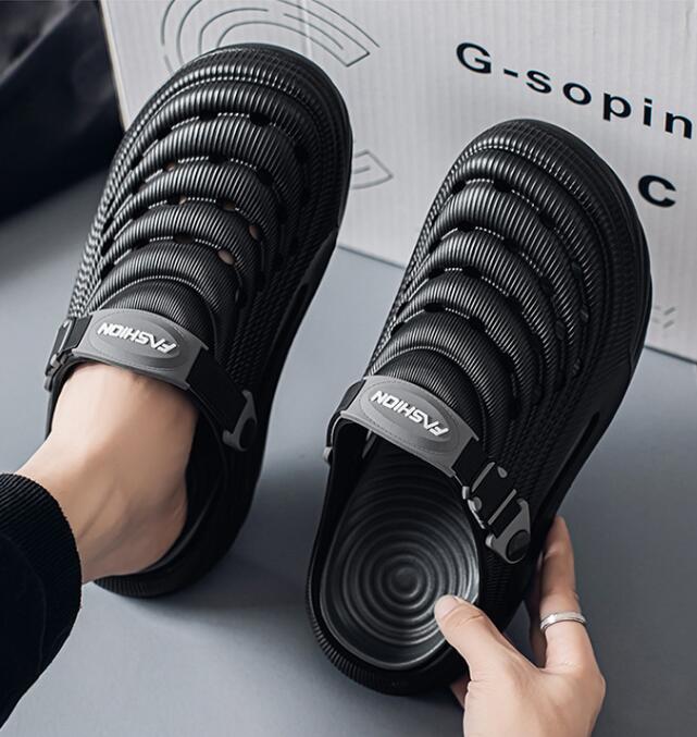 - 人気推薦夏新品 2waysオシャレスリッパ メンズ ビーチ リゾートサンダル つま先保護 防滑 通気 厚底 黒色 サイズ選択可