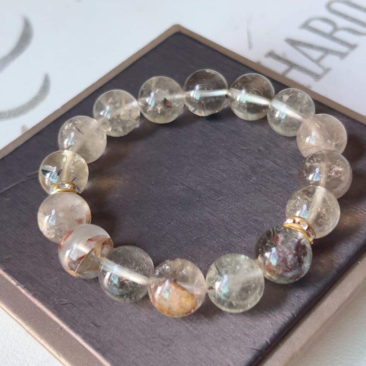 > ◇虹入り◇スモーキークォーツ(茶水晶) +ガーデンクォーツ ◇パワーストーン◇ブレスレット◇天然石◇巾着袋付き◇プレゼントにも020B6134