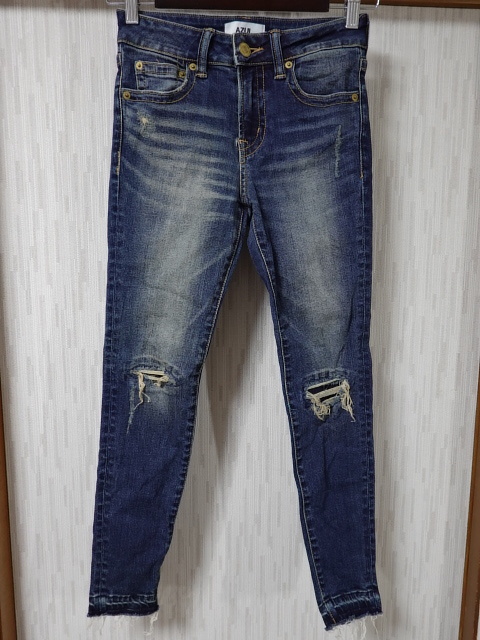> ●AZUL by MOUSSY アズールバイマウジー デニム REPAIR DENIM SKINNY XS ストレッチ素材●0613●