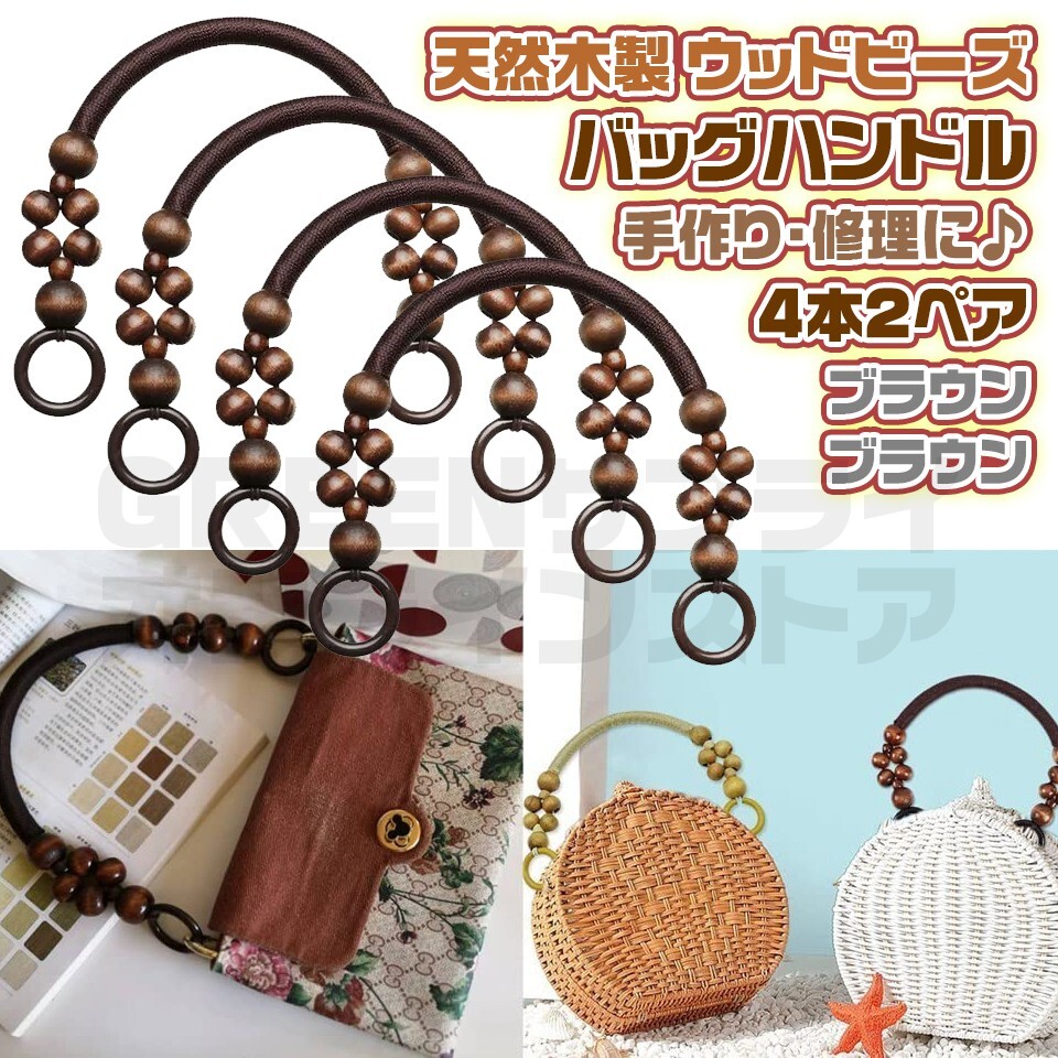 - 持ち手 木製 ウッドビーズ 茶×茶色 4個 2ペア バッグハンドル 交換用