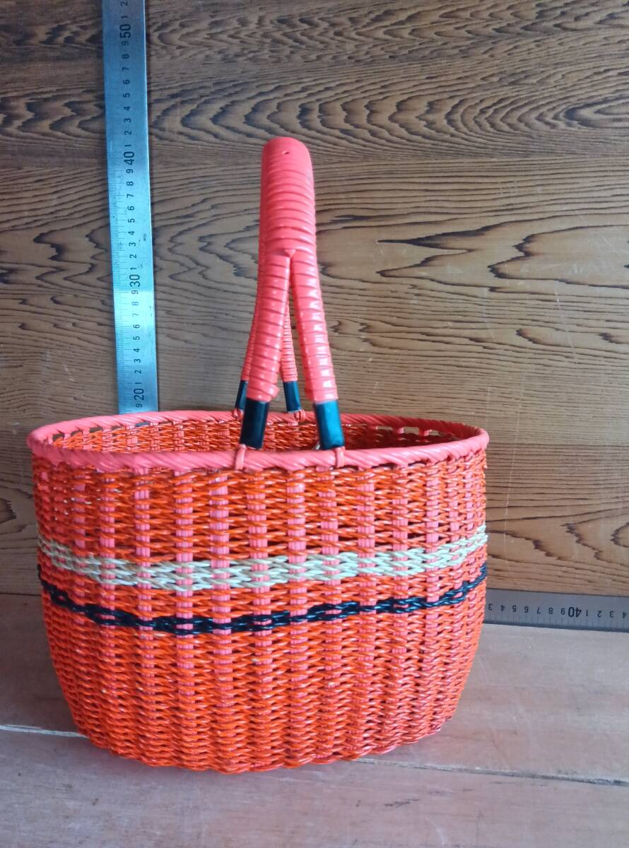 - 25061405 昭和レトロ お買い物カゴ 昭和ポップ 買い物カゴ オレンジ色 コレクション 昭和 バスケット 籐カゴ