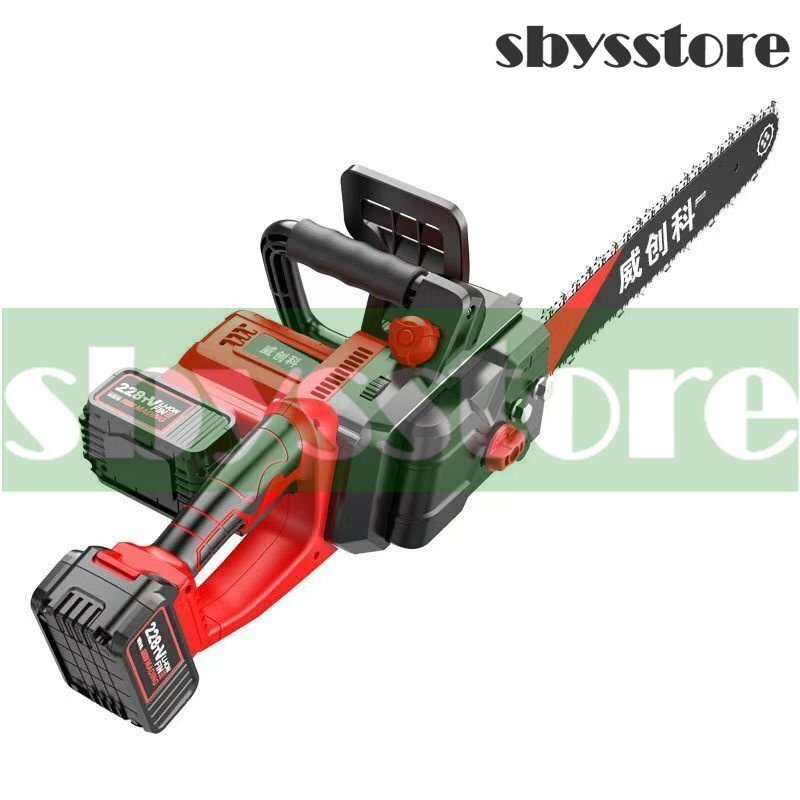 - 充電式 チェンソー 電動チェーンソー 16インチ コードレス 強力 片手軽量自動給油機能付き ハンディ 7280W チェーンソーガイドバー 2個電池