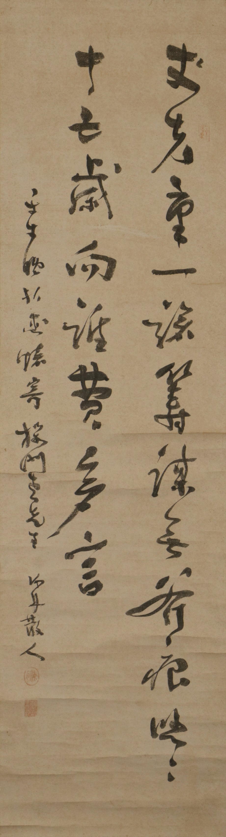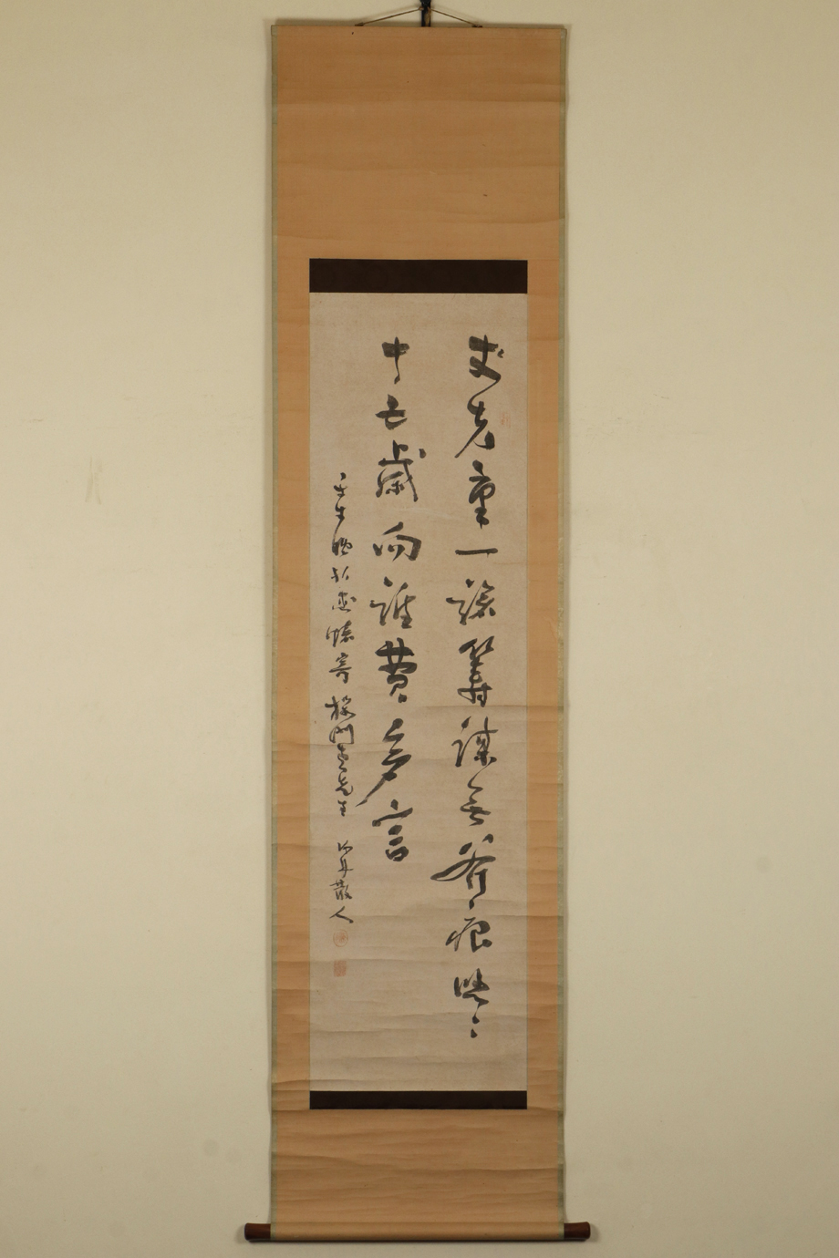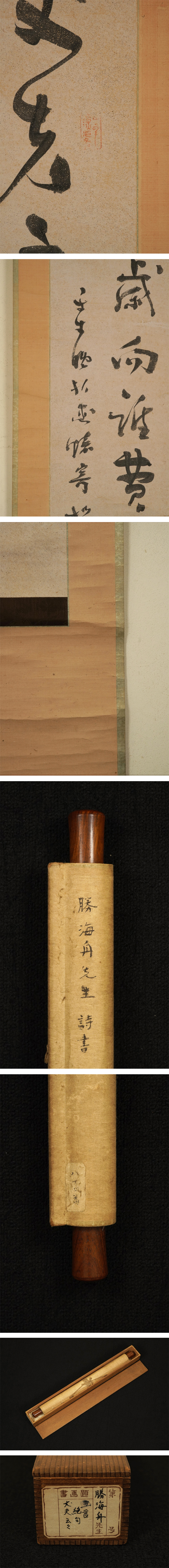 - 【真作】掛軸「勝海舟 二行書」明治15年60歳 書 幕末明治 幕臣 政治家 島田見山・永井青崖師事 軍艦奉行 大政奉還尽力 幕末三舟