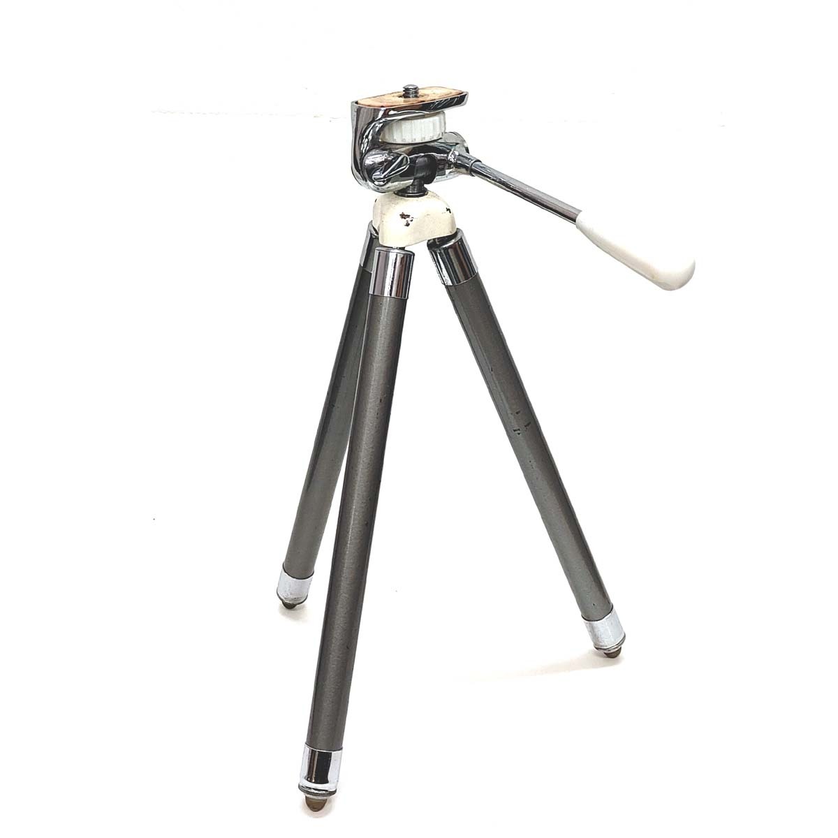 - コンパクト三脚 (ミニ三脚) シルバー 2way雲台装備★KING 最大103cm 縮長27cm★中古 実用品