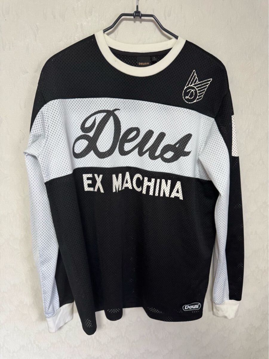 - DEUS デウス メッシュ シャツ Tシャツ 長袖 Lサイズ DMF81562 ブラック ホワイト