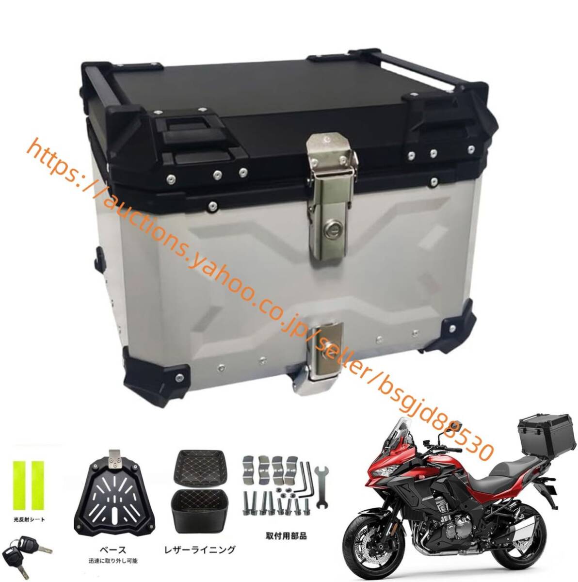 > バイク用リアボックス 大容量 45L 55L アルミ 取付ベース付 鍵2本付 簡単脱着 フルフェイス対応 四角 バイクボックス car-259