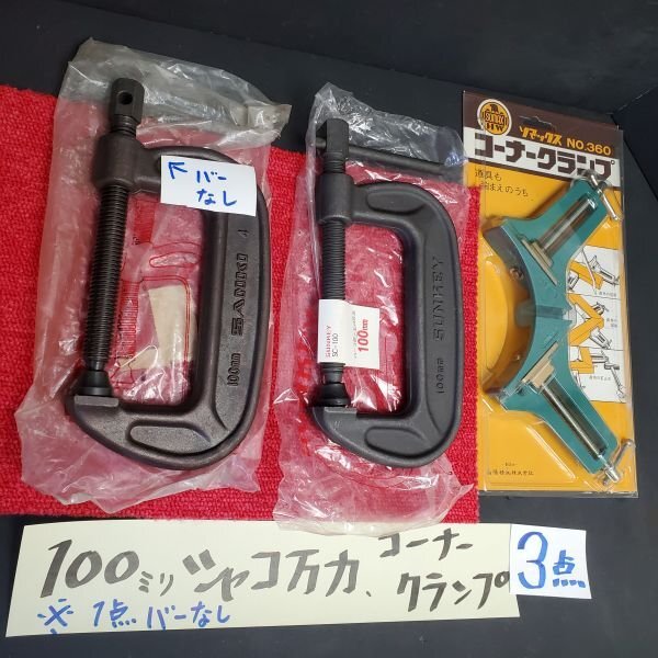 - 【アウトレット品】 SANKI SUNKEY ソマックス 100㎜ シャコ万力 コーナークランプ 3点セット 日曜大工 鉄工 接着作業 木工 sp-031-288