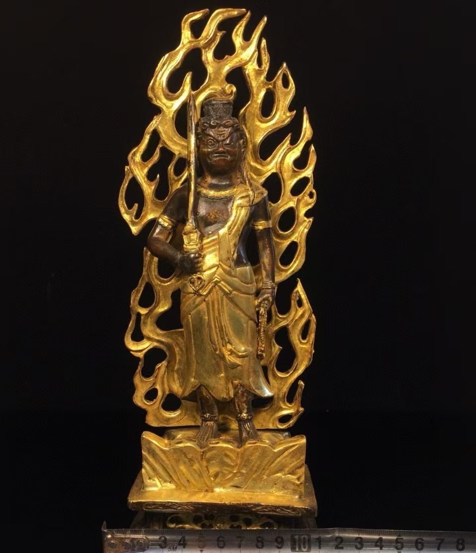> 仏像 清代 旧蔵 チベット古寺 古銅金不動明王 佛像 造像 銅製 銅琉金 唐物 收蔵品 時代物 古美術 古置物 希少珍品 供養品 文房具6.17