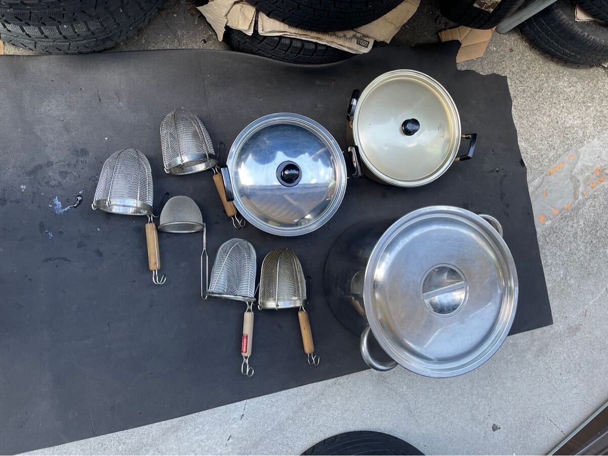 - ○D9804 厨房機器 両手鍋 茹であげざる すくいざるセット○