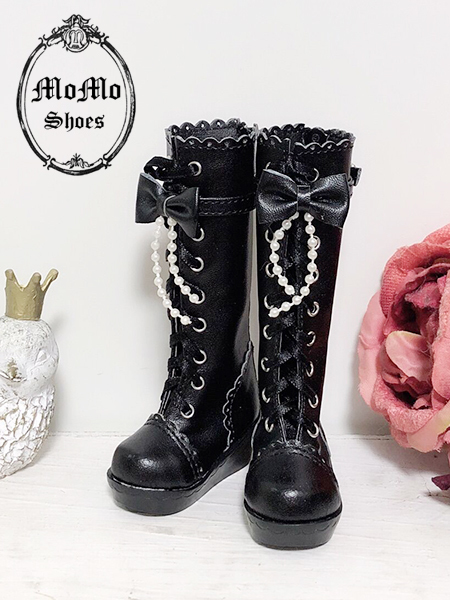 - 魔魔★MSD/MDD共通 編み上げリボンベルトブーツ 黒★新品