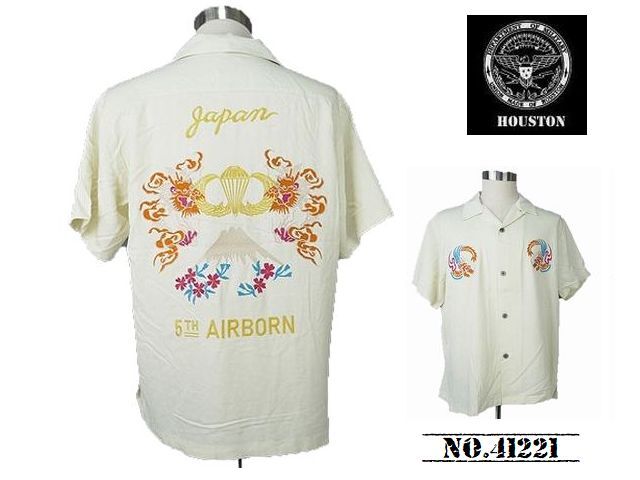 > 【送料無料 35%OFF】HOUSTON ヒューストン 刺繍スーベニアシャツ 「AIRBORNE」柄 NO.41221 CREAM_Lサイズ