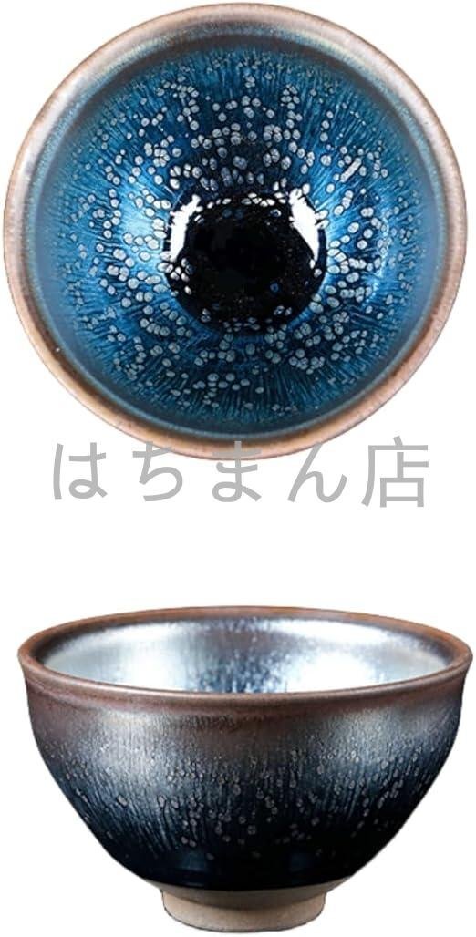 - 曜変 天目 抹茶碗 油滴ブルー釉茶碗 茶碗 油滴 茶碗 手作り 建盞 和食器 天目盃 酒器 料亭 (直径:9.0cm/高さ:5.5cm/水容量:130ml)