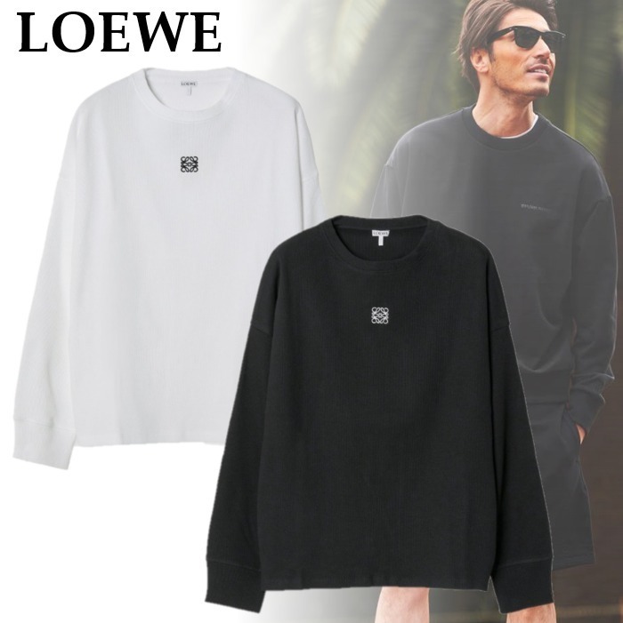 > ★新品★ロエベ 長袖 L モノグラム刺繍ロゴ入 オーバーサイズ ロングスリーブTシャツ ブラック