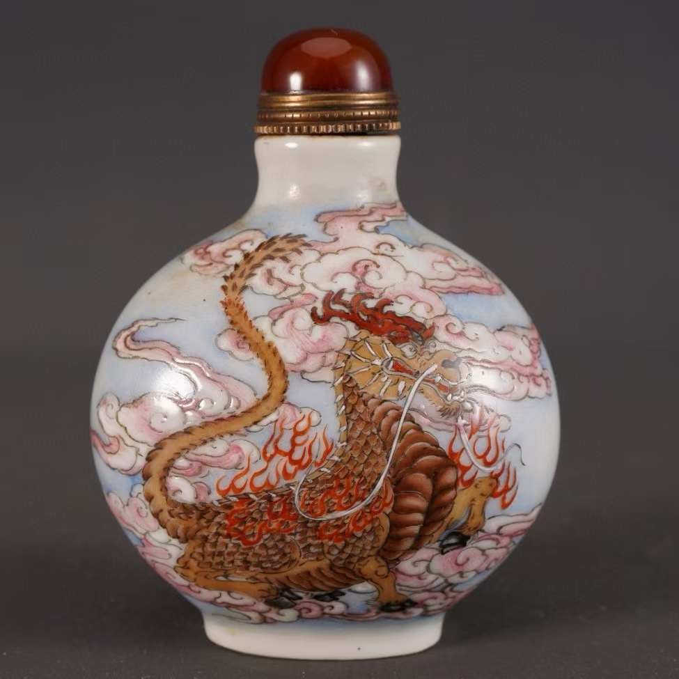 > 磁器 秘藏 清代 ピンク・瑞獣古麒麟・鼻タバコ壷 酒器 茶器 唐磁 染付 陶磁器 收蔵品 古美味 時代物 古美術 古置物 希少珍品 中國文玩6.117
