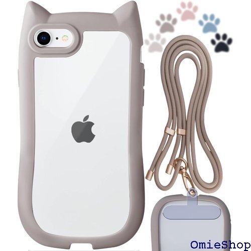 > iphone se3 ケース クリア 猫耳 可愛い i 肩掛け かわいい iphone 8 ケース クリアグレー 2547