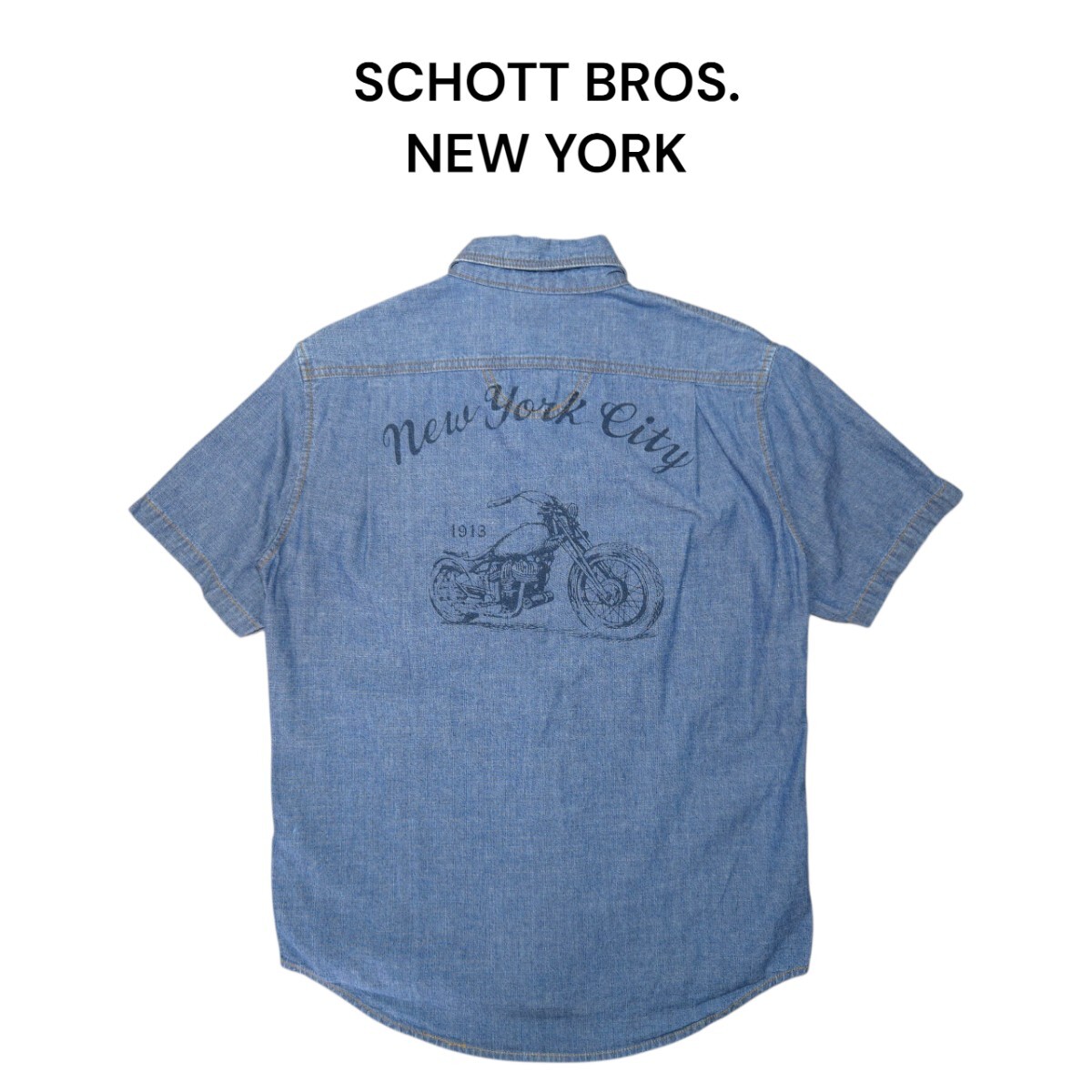 - SCHOTT BROS ビッグプリント半袖デニムシャツ ショット チンスト