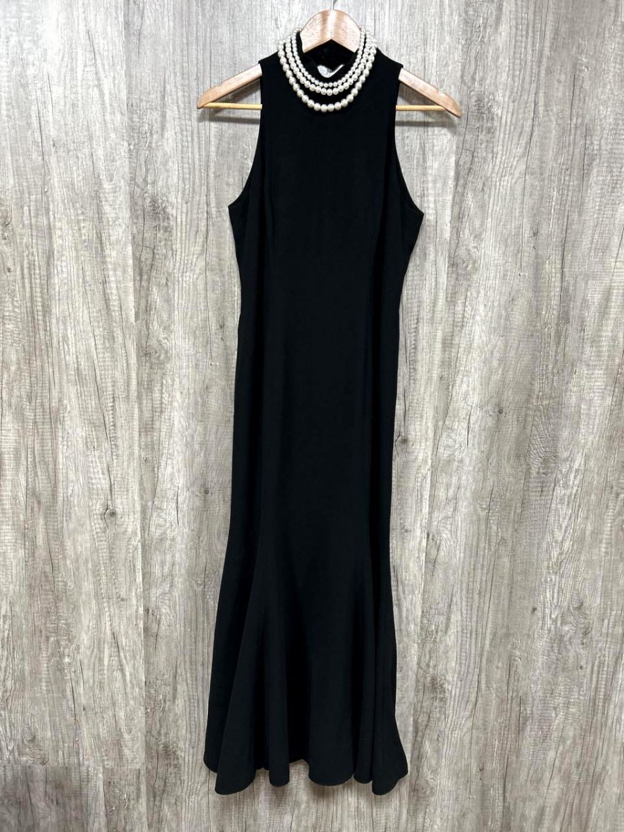 > アンフィニ INFINE パールネックレス付き ノースリーブ ロング 結婚式二次会 ドレス ワンピース size9AR/黒 ■◆◎ レディース