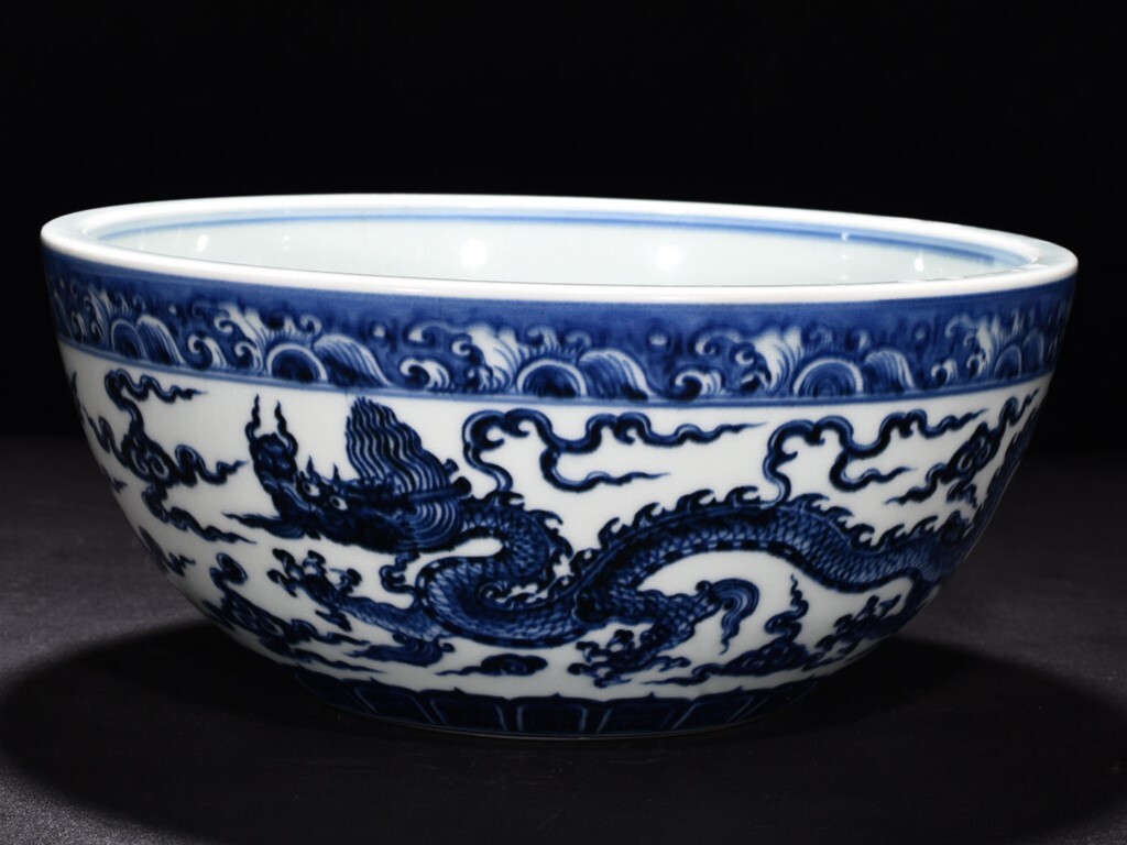 - TB227■中国古玩 唐物 明宣徳 青花雲龍紋鉢 時代物 極上品■高さ11.5cm・直径26.5cm■