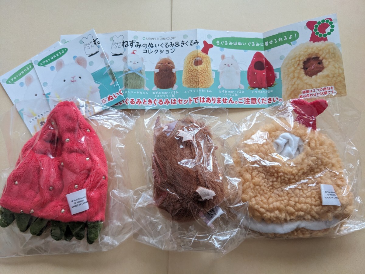 - 未使用 ねずみのぬいぐるみ&きぐるみコレクション 3種 ぬいぐるみ1種 きぐるみ2種 カプセルトイ ガチャ 三角ユウリ リーフレットあり