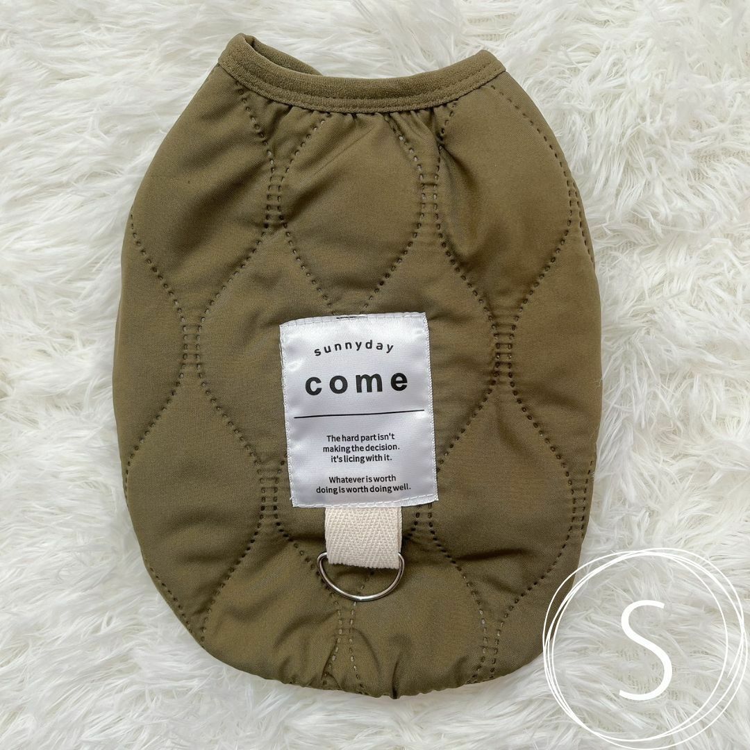- 人気 ドッグウェア 犬服 カーキ S キルティング ダウンベスト モコモコ 防寒
