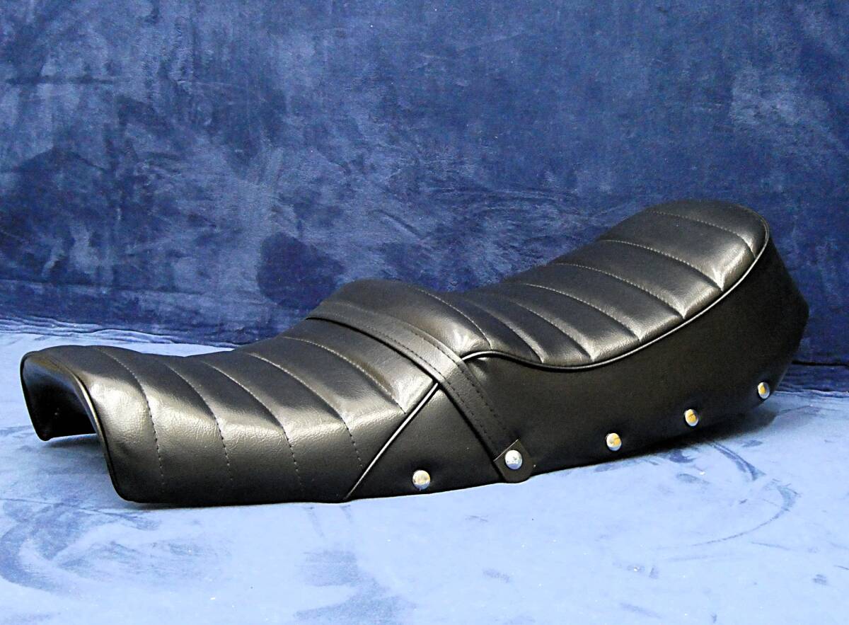 - 旧CB400F 黒皮ボタン タックロールシート/ブラック あんこ抜き 完成品 Cb400Four 398/408 段シート 変形 タンデム ベルト 金具
