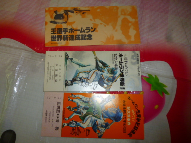 - レトロ 未使用 王選手ホームラン 世界新達成記念 水道橋駅入場券 東京 青梅券 1977年