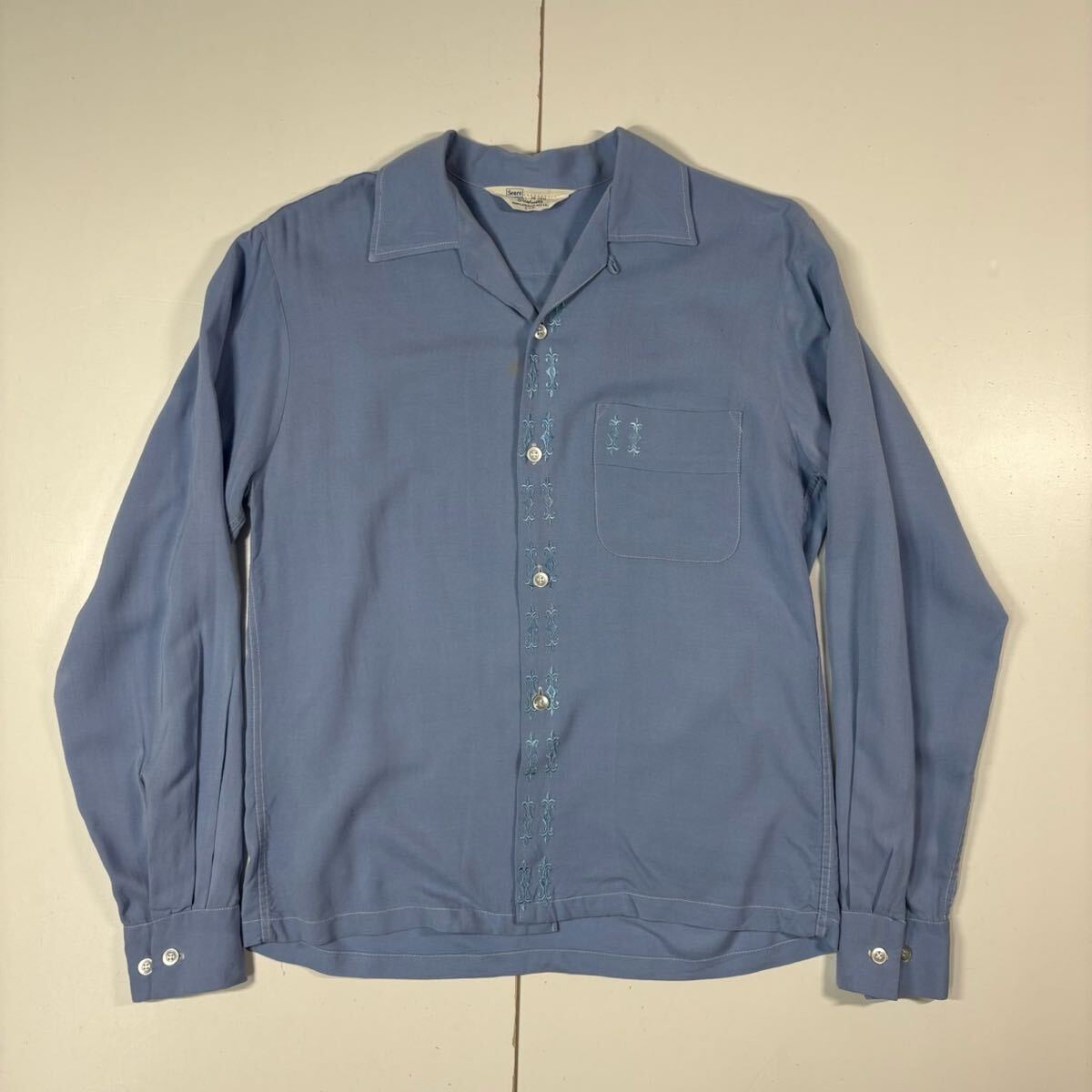 - 【S】60s Vintage Sears Open Color Rayon Shirt 60年代 ビンテージ シアーズ オープンカラー レーヨン 長袖 シャツ F1588