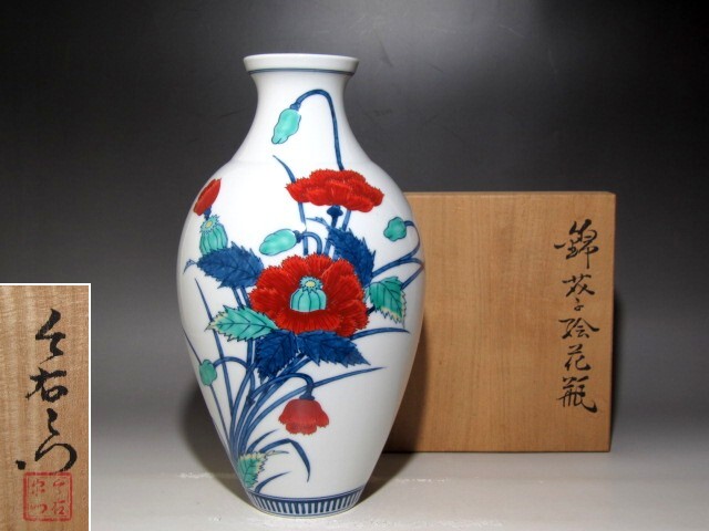 - 十二代今泉今右衛門 錦葵紋花瓶 美しい姿の逸品☆z488