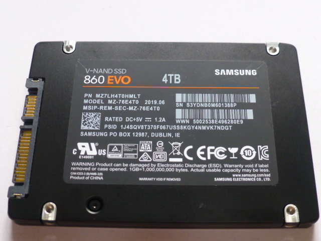 - Samsung SSD 860EVO SATA 2.5inch 4TB(4000GB) 電源投入回数762回 使用時間8905時間 正常98%判定 MZ-76E4T0 本体のみ 中古品です