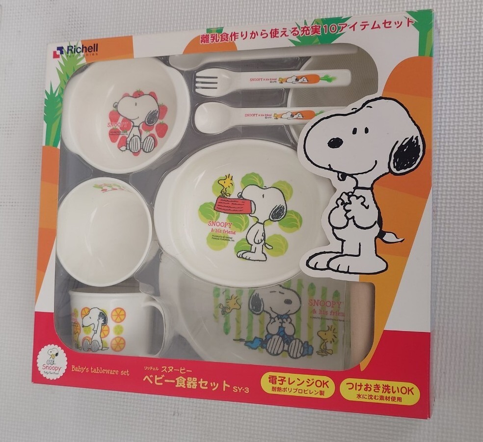 - 【未使用】 リッチェル スヌーピー ベビー食器セット SY-3 Richell SNOOPY 離乳食 赤ちゃん お食事セット 皿 キャラクター