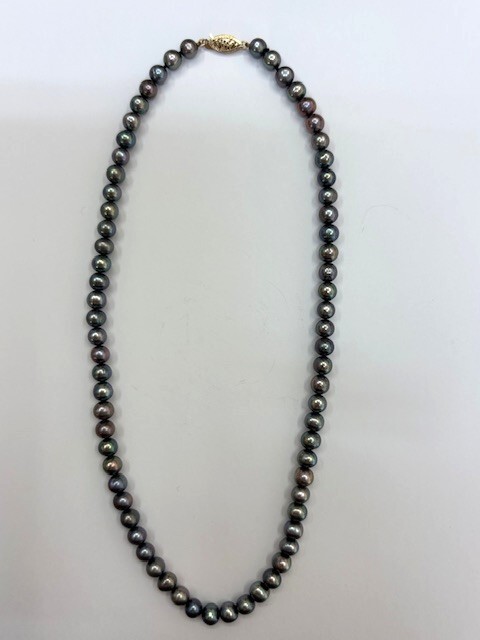 - 黒真珠/パールネックレス 留め具585/14K刻印あり 約0.5cm~0.6cm