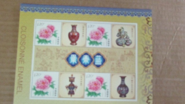- × 小型切手 中国 2004-Z1 牡丹図 景泰藍タブ付き