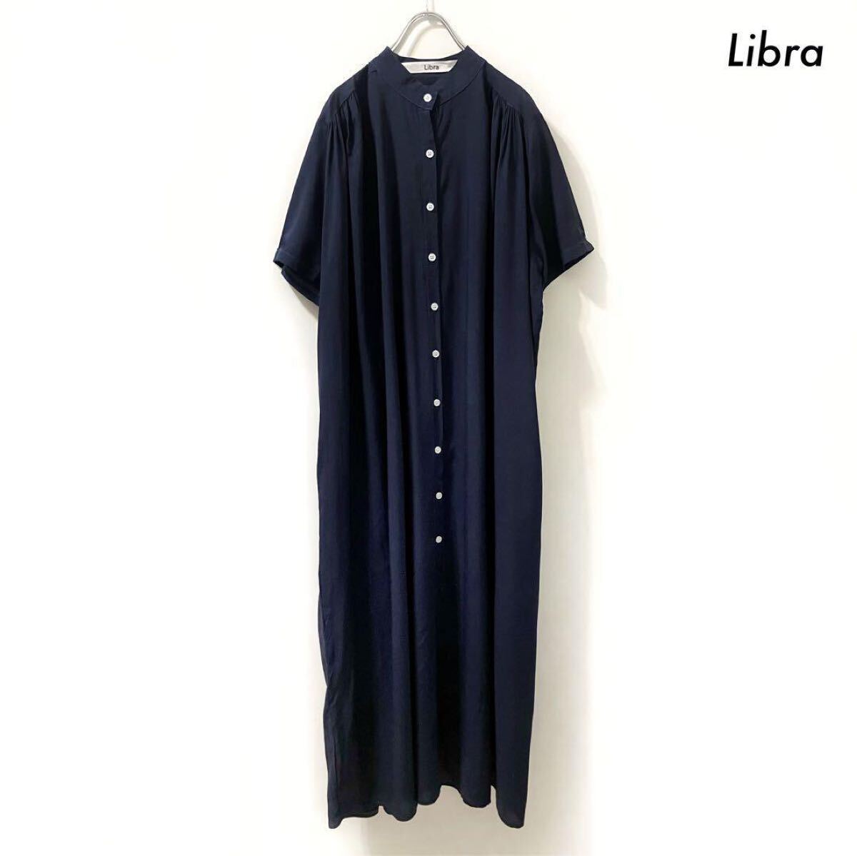 - 【送料無料】Libra リブラ★半袖シャツワンピース 未使用品 ネイビー アンティローザ
