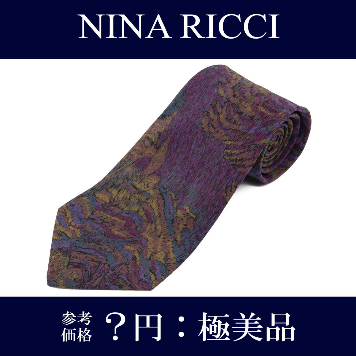- 送料無料 ニナリッチ ネクタイ レギュラータイ シルク 紫 パープル 茶色 ブラウン 青緑 黄土色 森 自然 ブランド 珍しい フランス製 P004