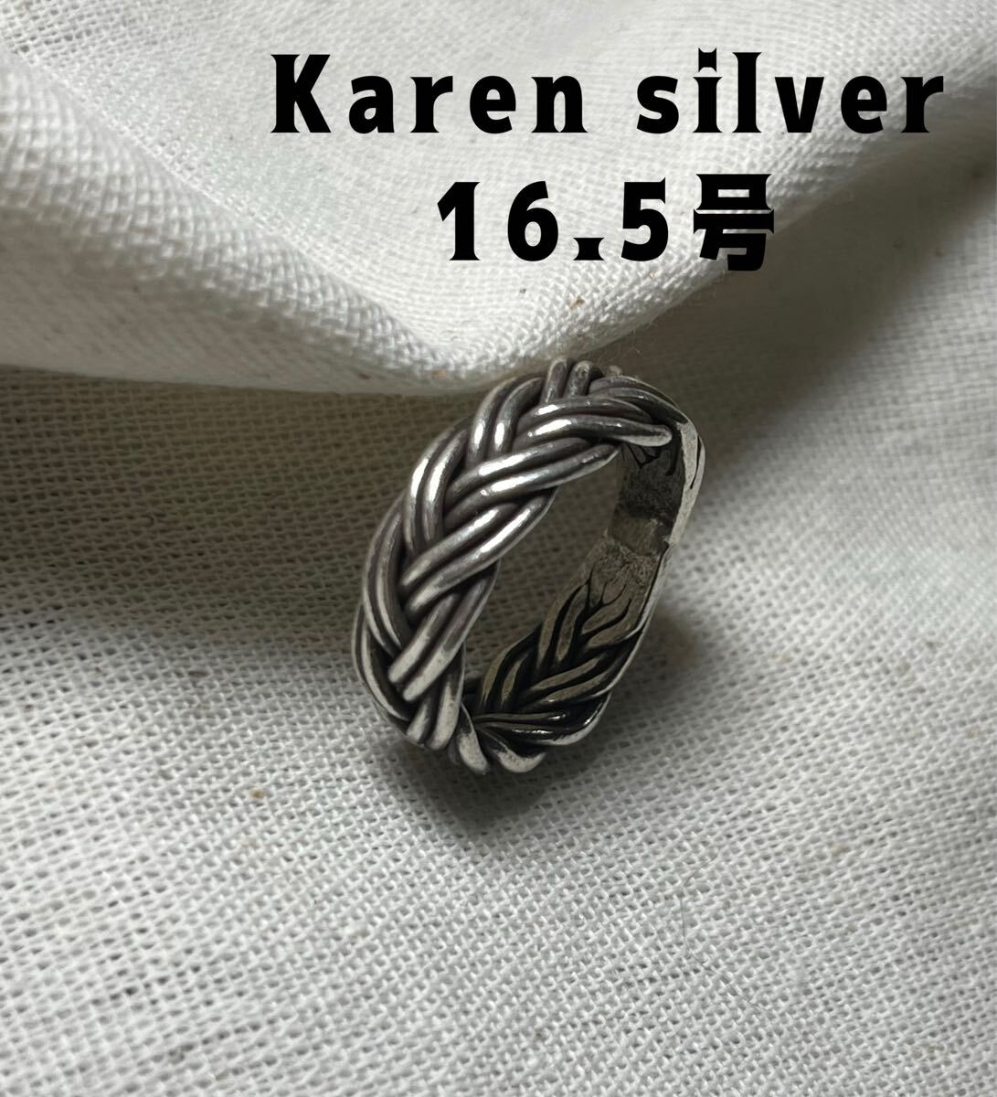 - R73め509すf カレンシルバー緻密編み込みKarensilverチェーンリングカレン族指輪16.5号f
