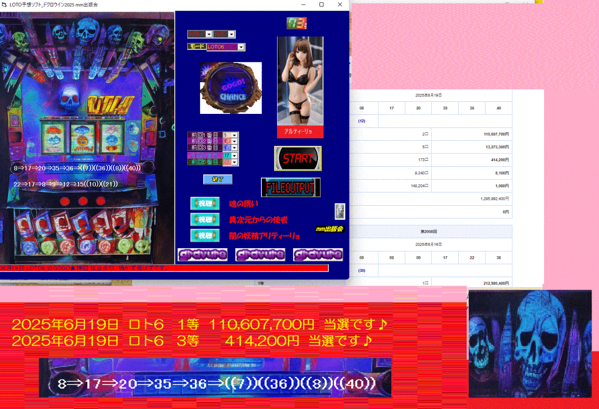 - 夏新作 [LOTO予想ソフト_ドクロウイン2025] ロト予想ソフト 2025年6月19日 ロト6 1等 110,607,700円 当選です♪ .